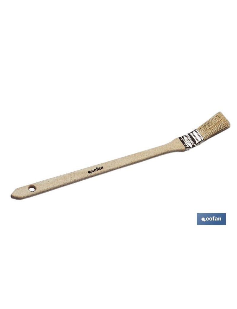 Paletina o brocha diseñada para pintar radiadores, por la parte exterior e interior con mango de madera de haya y virola de acero chapado. Uso eventual. Fibra de cerda. Fabricación vulcanizada. Ancho de 30 o 50.