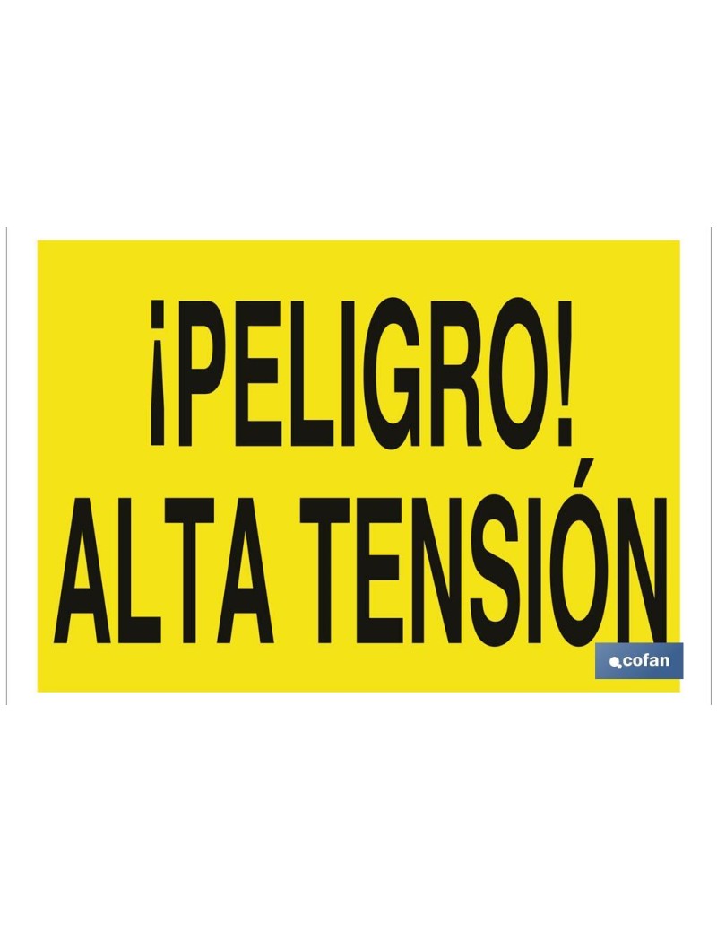Señal de advertencia de peligro con texto alta tensión. Tamaño y material a elegir.