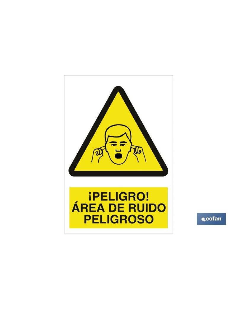 Señal de advertencia de peligro área de ruido peligroso. Tamaño y material a elegir.
