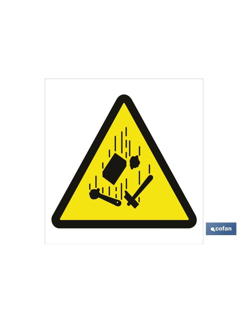 Señal de advertencia peligro caída de cargas.