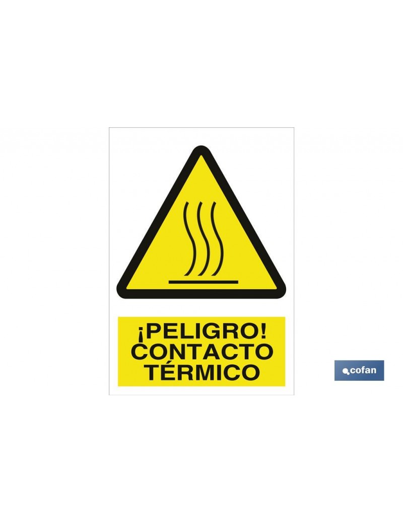 Señal de advertencia de peligro contacto térmico. Tamaño y material a elegir.