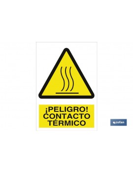 Señal de advertencia de peligro contacto térmico. Tamaño y material a elegir.