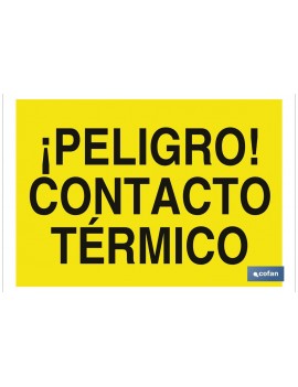 Señal de advertencia de peligro con texto contacto térmico. Tamaño y material a elegir.