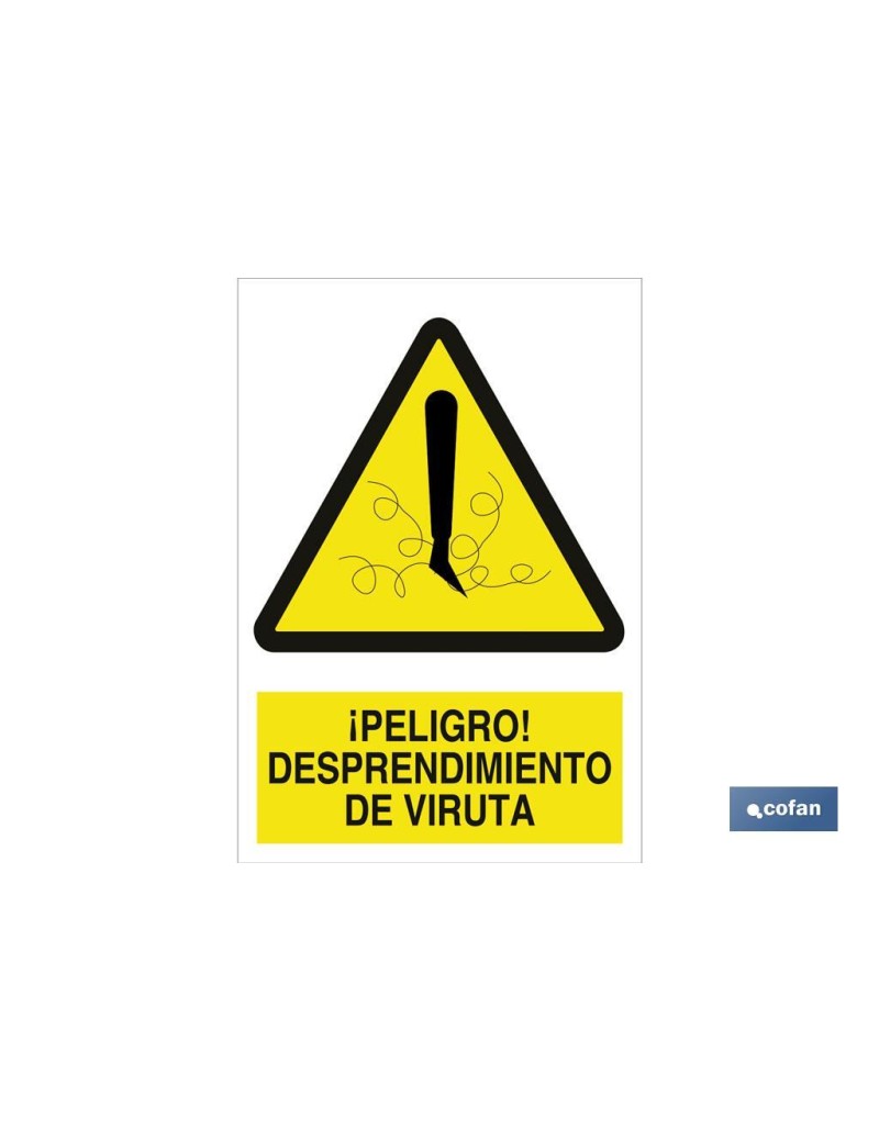 Señal de advertencia de peligro desprendimiento de viruta. Tamaño y material a elegir.