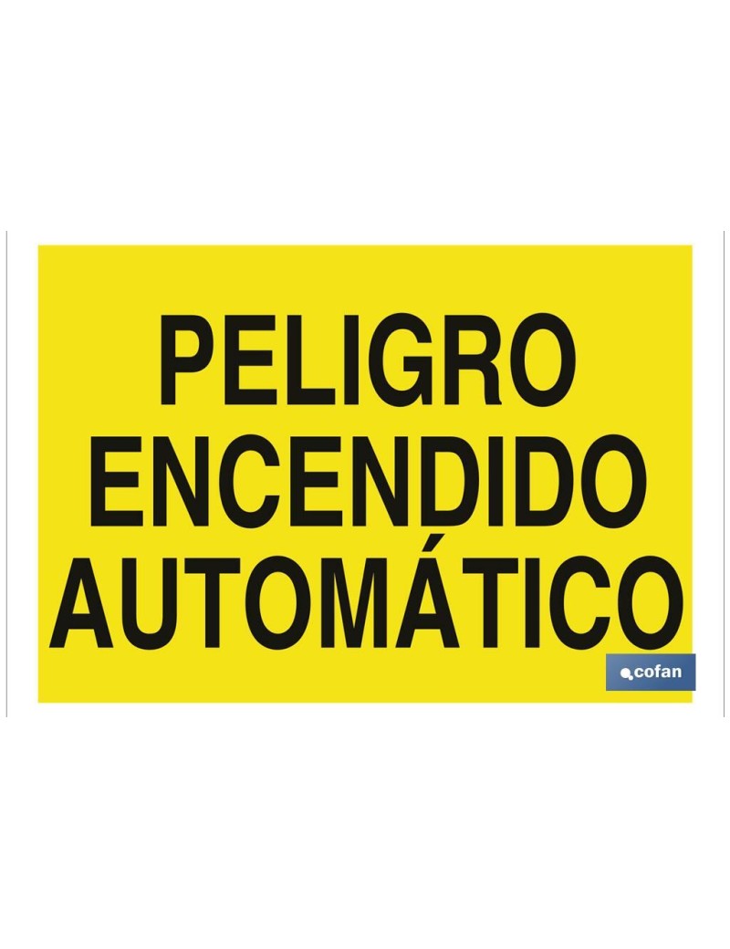 Señal de advertencia con texto, Peligro encendido automático.