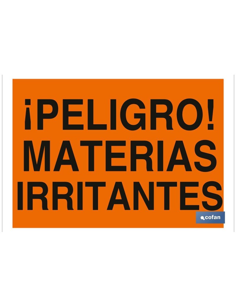 Señal de advertencia de peligro con texto materias irritantes. Tamaño y material a elegir.