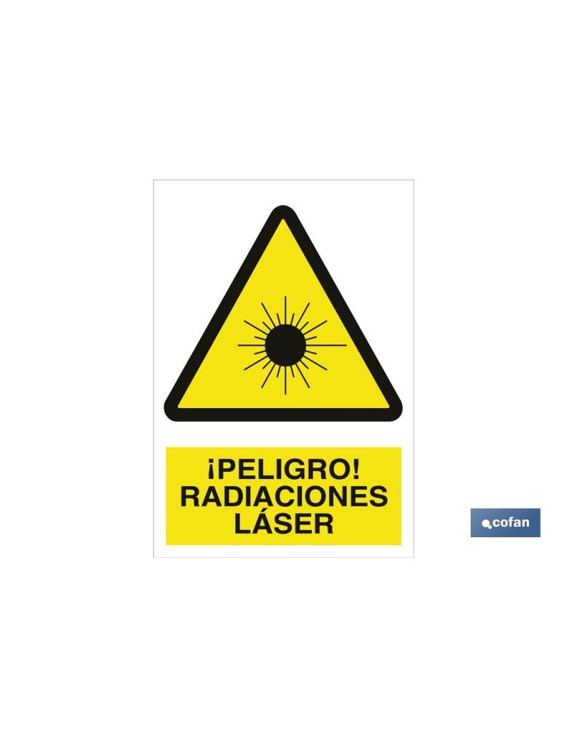 Señal de advertencia de peligro radiaciones láser. Material y tamaño a elegir.