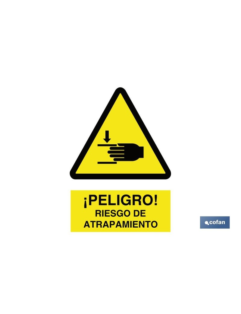Señal de advertencia de peligro riesgo de atrapamiento. Tamaño y material a elegir.
