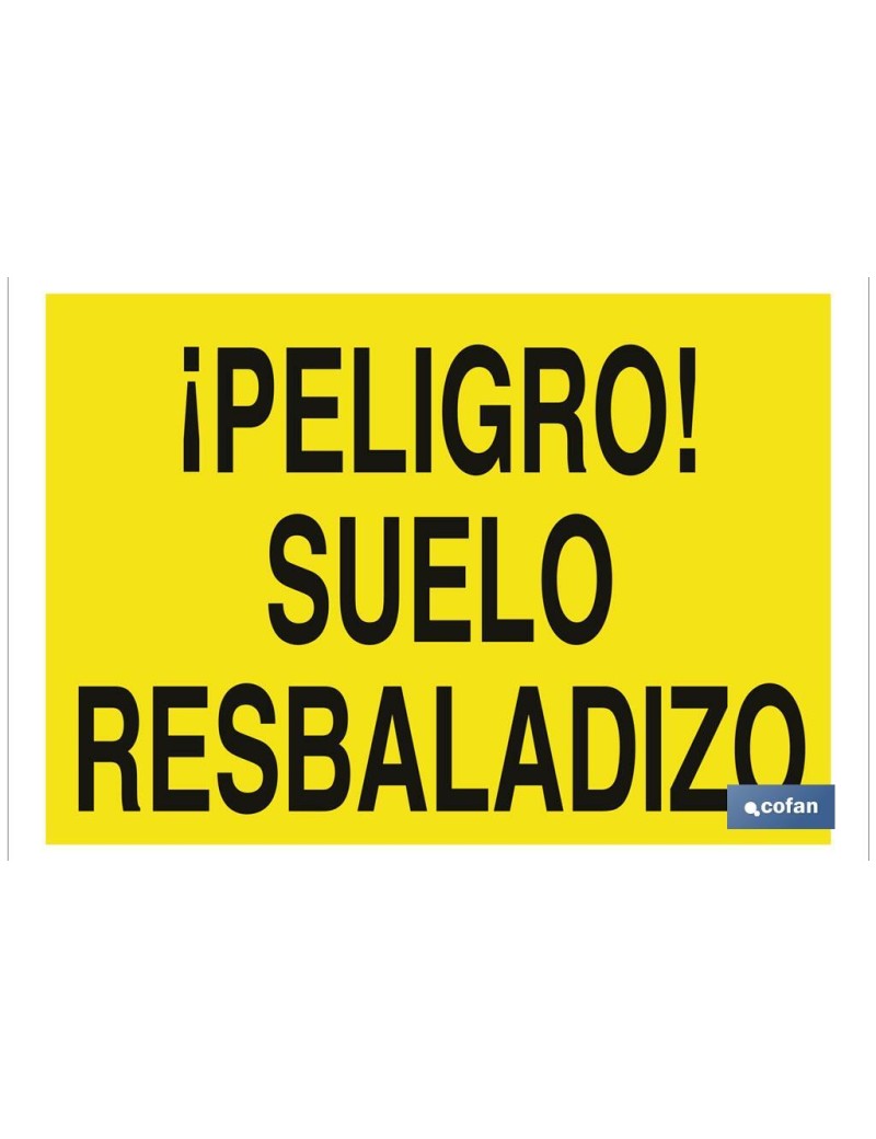Señal de advertencia de peligro con texto suelo resbaladizo. Tamaño y material a elegir.
