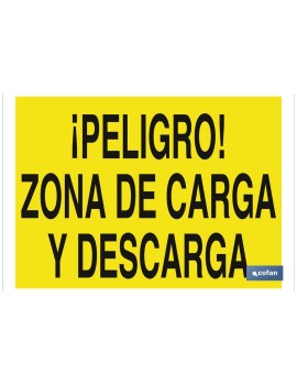 Señal de advertencia de peligro con texto zona de carga y descarga. Tamaño y material a elegir.