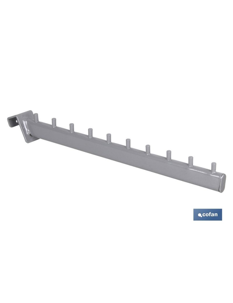 Percha Inclinada Ovalada con pivotes (para barra de carga expositor) 400 mm