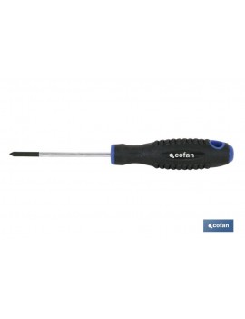 Destornillador phillips DIN ISO 8764-1 modelo confort plus, con medidas desde PH-0 hasta PH-3 y longitud máxima de 27 centímetros.