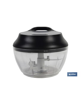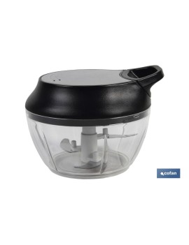 Picadora manual para todo tipo de frutas y verduras. Fabricada en ABS, polipropileno y acero inox. Resultados instantáneos de la forma más rápida y sencilla. Sus cuchillas de acero inoxidable trocean en cuestión de segundos. De uso y limpieza muy fácil. Su funcionamiento mecánico sin motor permite utilizarla en cualquier lugar, sin necesidad de enchufe y sin cables, al tirar del asa de la cuerda las cuchillas giran. Cuenta con una tapa para el bol y un accesorio batidor.