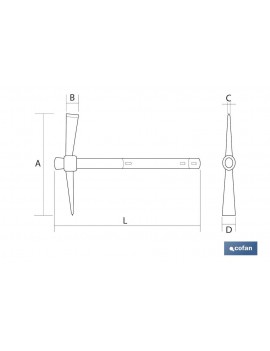 Pico de cavar o piqueta con mango de fibra. Peso 500 gramos.