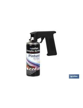 Pistola para Espray Universal que permite trabajar con cualquier tipo de envases en espray de pinturas, lacas, disolventes, limpiadores, aflojatodos, etc., sin ensuciar las manos en su aplicación. Ideal para realizar trabajos en talleres metálicos, carpinterías de aluminio y madera, en trabajos de construcción, talleres de automóvil, vehículos industriales, etc. La pistola es ideal para pulverizar cómodamente los productos en espray. Permite pulverizar fácilmente incluso superficies de gran tamaño. Este modelo convierte cualquier rociador en una pistola para espray portátil para barnizar con total limpieza y sin mancharse los dedos.