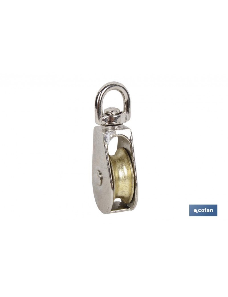 Poleas simples giratorias. Poleas de una roldana con medidas de diámetro desde 12 hasta 40 mm.