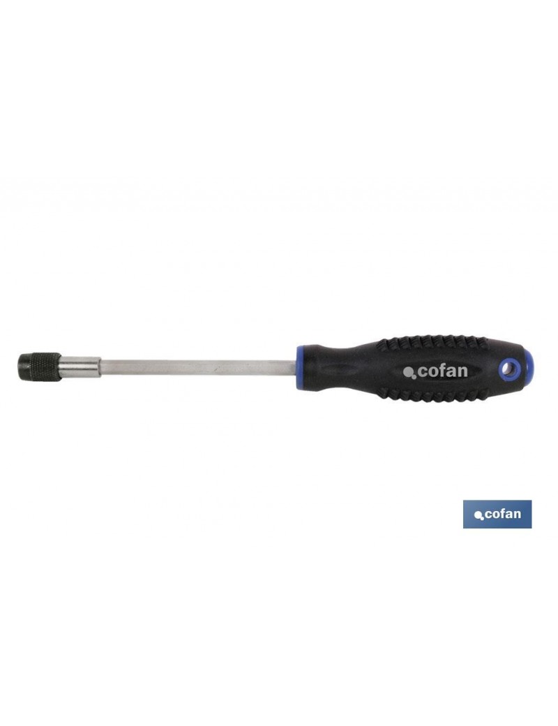 Destornillador rígido para puntas de 1/4\' modelo confort plus, con porta puntas de cambio rápido, 24 centímetros de longitud total.