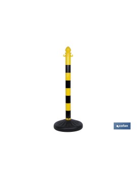 Poste para cadena de plástico con base incluida en color amarillo y negro con un metro de altura total.