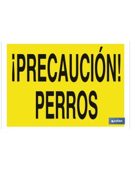 Señal de advertencia de precaución perros con texto. Tamaño y material a elegir.