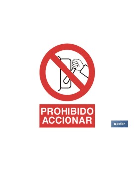 Señal Pictograma y Texto prohibido accionar en varias medidas y materiales.