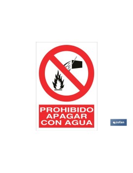 Señal de prohibición, prohibido apagar con agua.