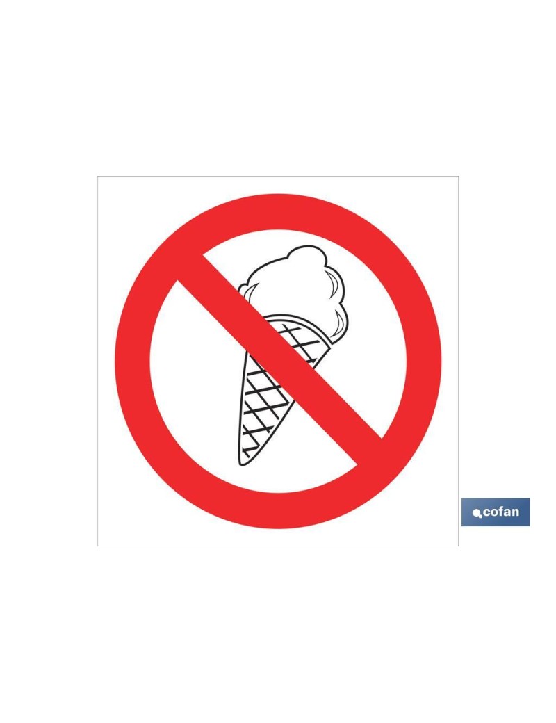 Señal de prohibición, solo pictograma, prohibido comer helados.