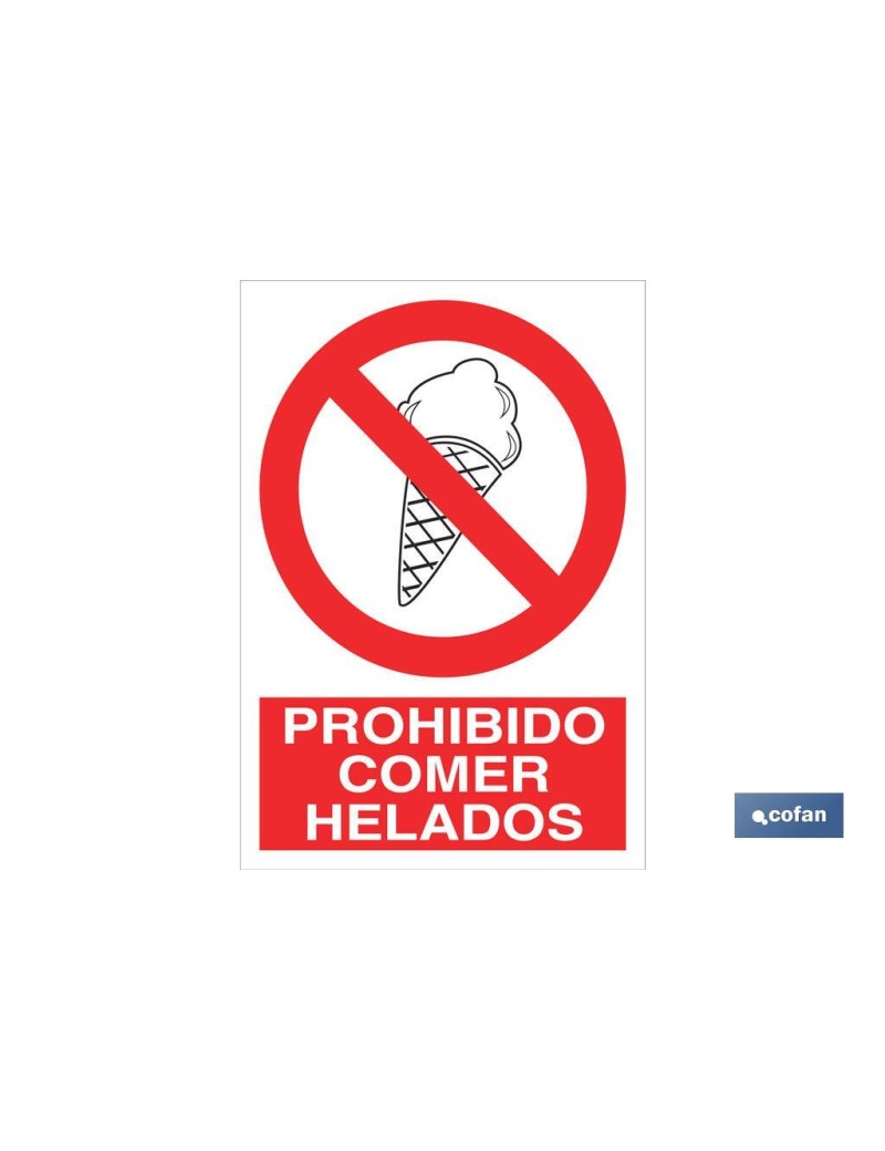 Señal de prohibición, prohibido comer helados.