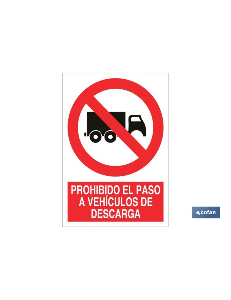 Señal Pictograma y Texto prohibido paso vehículos de descarga en varias medidas y materiales.