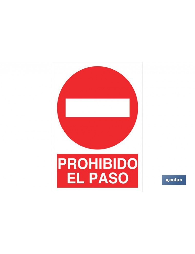 Señal Pictograma y Texto prohibido paso en varias medidas y materiales.