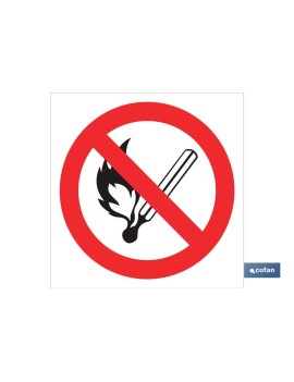Señal Pictograma prohibido encender fuego en varias medidas y materiales.