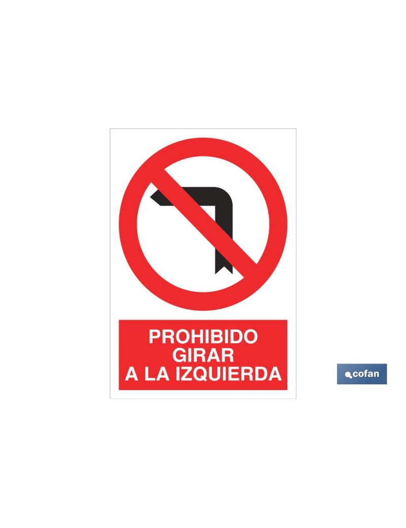 Señal Pictograma y Texto prohibido girar a la izquierda en varias medidas y materiales.