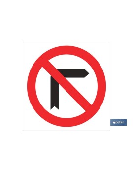 Señal Pictograma prohibido girar a la derecha en varias medidas y materiales.