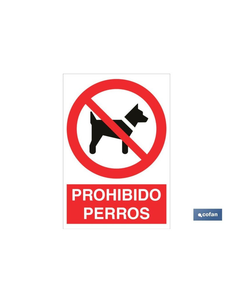 Señal Pictograma y Texto prohibido perros en varias medidas y materiales.