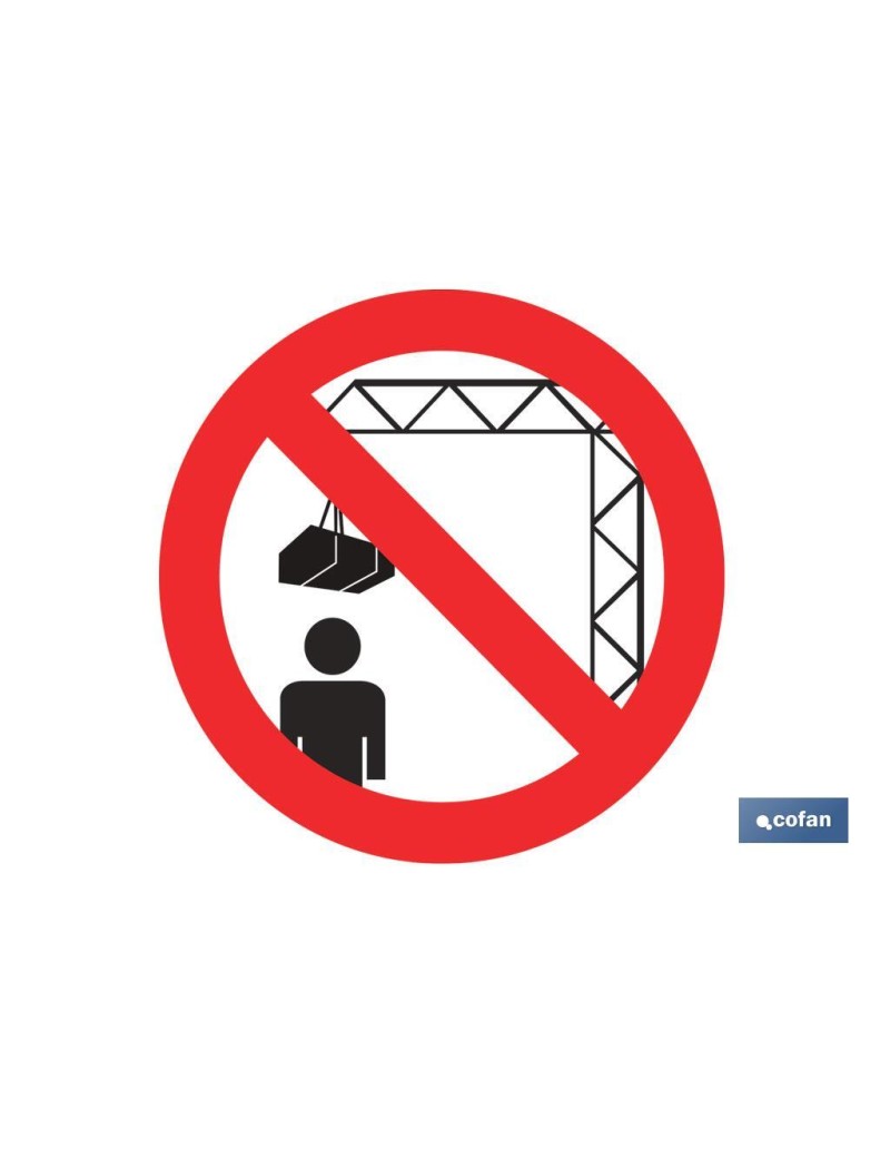 Señal Pictograma prohibido situarse debajo de la carga en varias medidas y materiales.