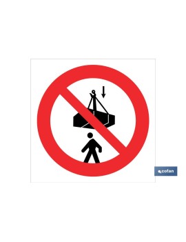 Señal Pictograma prohibido situarse debajo de la carga en varias medidas y materiales.
