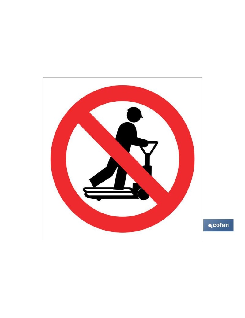 Señal Pictograma prohibido subir transpalet en varias medidas y materiales.