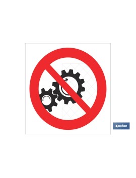 Señal Pictograma prohibido tocar engranajes en varias medidas y materiales.