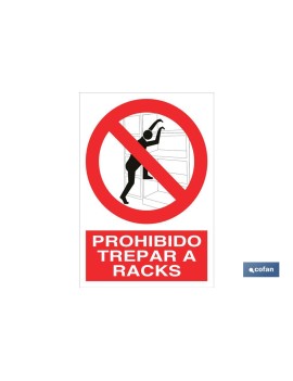 Señal Pictograma y Texto prohibido trepar a Raks en varias medidas y materiales.