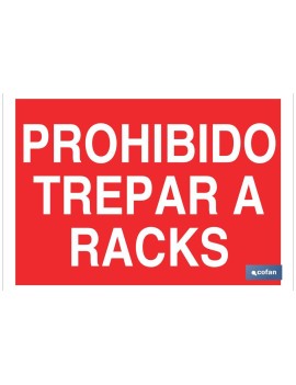 Señal Texto prohibido trepar a raks en varias medidas y materiales.