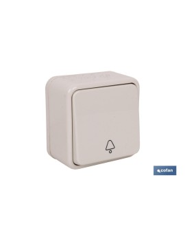 Pulsador campana de Superficie en color blanco. Características 10A 250V.
