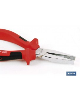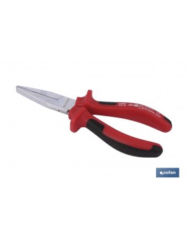 Alicates de punta plana 1000 V aislados, provisto de corte en acero cromo vanadio con tratamiento especial resistente al calor. Medida en 160mm