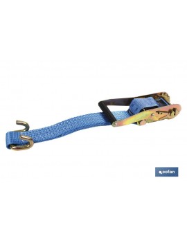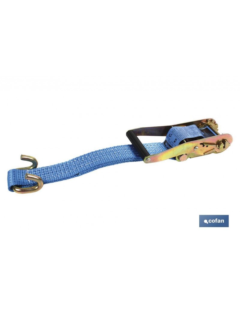 Rachet con 0,5 metros de cinta en 1.500, 3.000 y 5.000 kilos con gancho de agarre abierto.