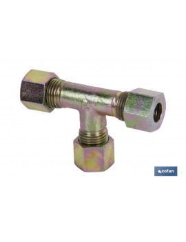 Racor metálico T con anillos de cierre, para tubos desde 6mm hasta 15mm de exterior.
