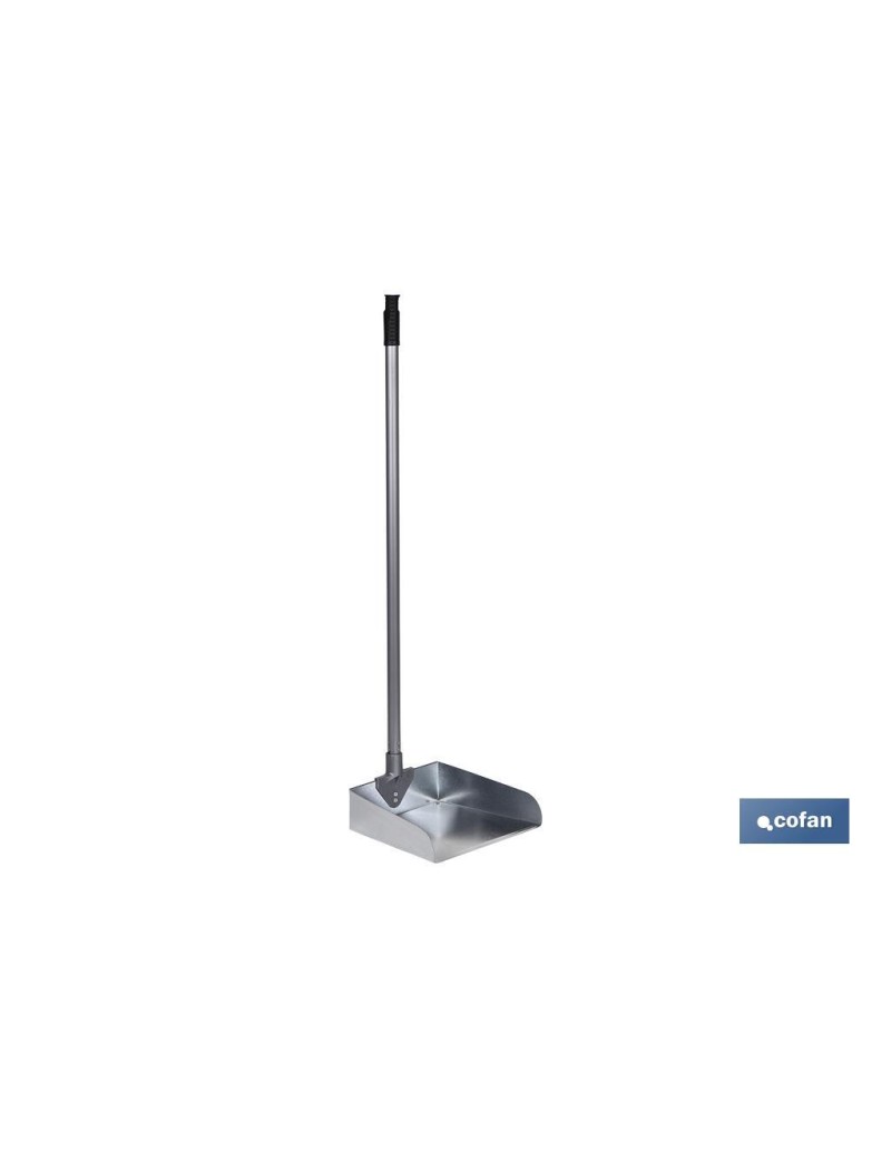 Recogedor metálico de boca ancha Modelo Zango, fabricado en acero galvanizado. Incluye palo metálico con recubrimiento en PVC en color gris plata. La pieza de anclaje de sujección es de 9 cm x 8.5 cm de ancho y está reforzado con dos puntos de sujeccion. Medidas:· Palo metálico: 75 cm (Ø2 cm).· Largo total del recogedor: 83 cm.· Alto del recogedor: 6,5 cm.· Ancho del recogedor: 24 cm.· Profundidad del recogedor: 20,5 cm.· Peso: 43 g.