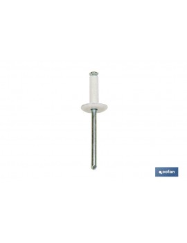 Remache de apertura en flor, con la cabeza ancha para mejor fijación. Ideal para la colocación de matrículas, chapas y  remolques. En color blanco.