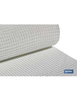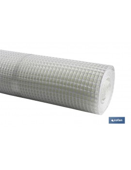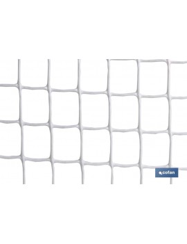 Malla plástica con hueco cuadrado de 20 mm de lado, color blanco en rollos de 1 metro de alto x 25 metros de longitud