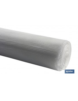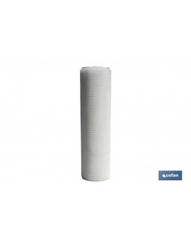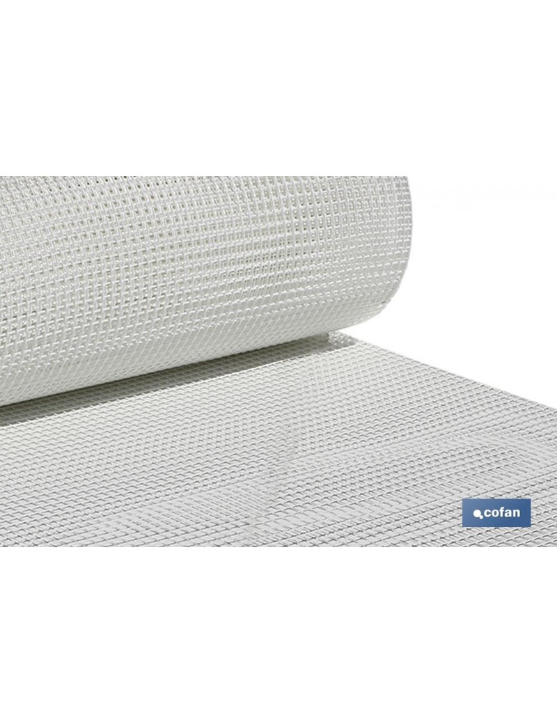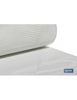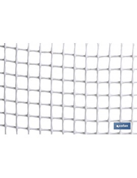 Malla plástica con hueco cuadrado de 10 mm de lado, color blanco en rollos de 1 metro de alto x 25 metros de longitud