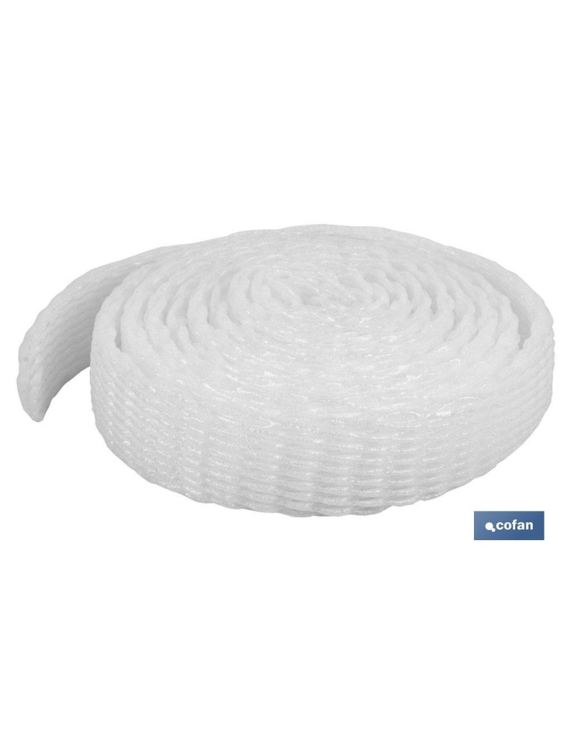 Rollo de malla tubular extensible hasta 12 cm en espuma elástica para proteger objetos frágiles.