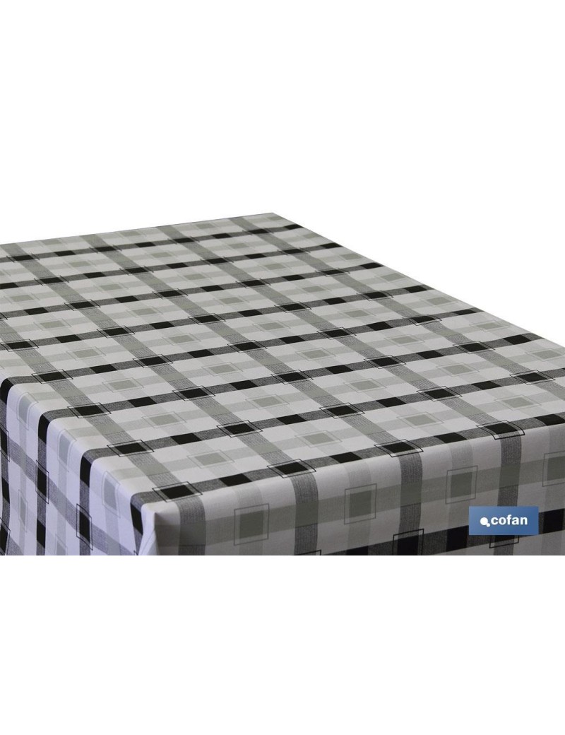 Rollo semihule Basic modelo Florencia. Es una buena elección para su uso en todo tipo de mesas. Este semi hule nos ofrece suavidad y resistencia para un uso diario. Fabricado con base de polipropileno TNT tejido sin tejer y soporte de PVC estampado. Rollo de1,40 x 25m de longitud. Su diseño es un estampado en cuadros en colores gris y blanco.