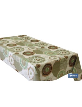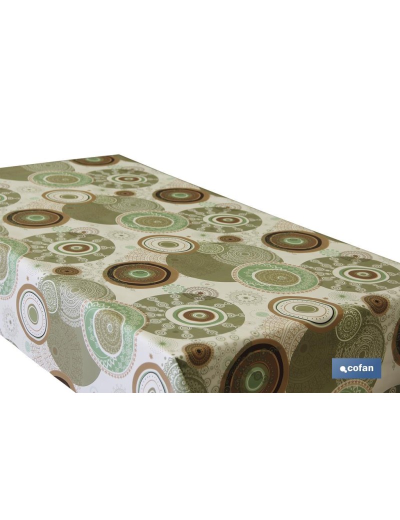 El rollo semihule Modelo Cúrcuma es una buena elección para su uso en todo tipo de mesas. Fabricado con base de polipropileno TNT tejido sin tejer y soporte de PVC estampado. Diseño con mandalas y círculos geométricos. Rollo de 1,40 x 25 m de longitud.